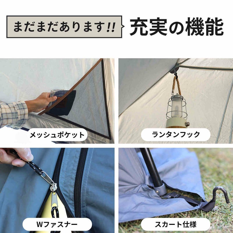 90秒で設営でき、4面フルクローズ・フルメッシュ対応。