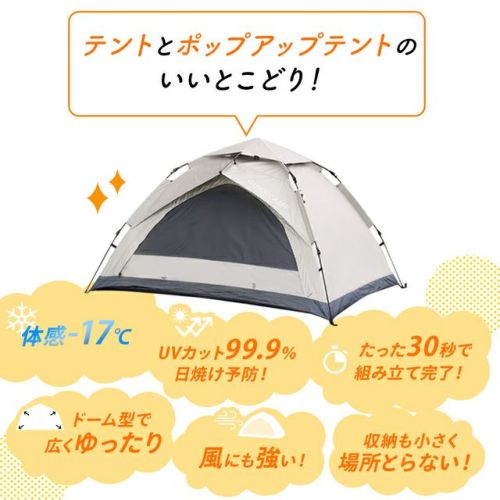 ポップアップテントよりも風に強く、畳みやすいワンタッチフレームタイプ