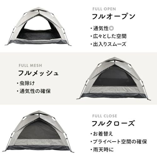 ワンタッチテント3人用 グレー/ブラックコーティング QC-OT210R GY