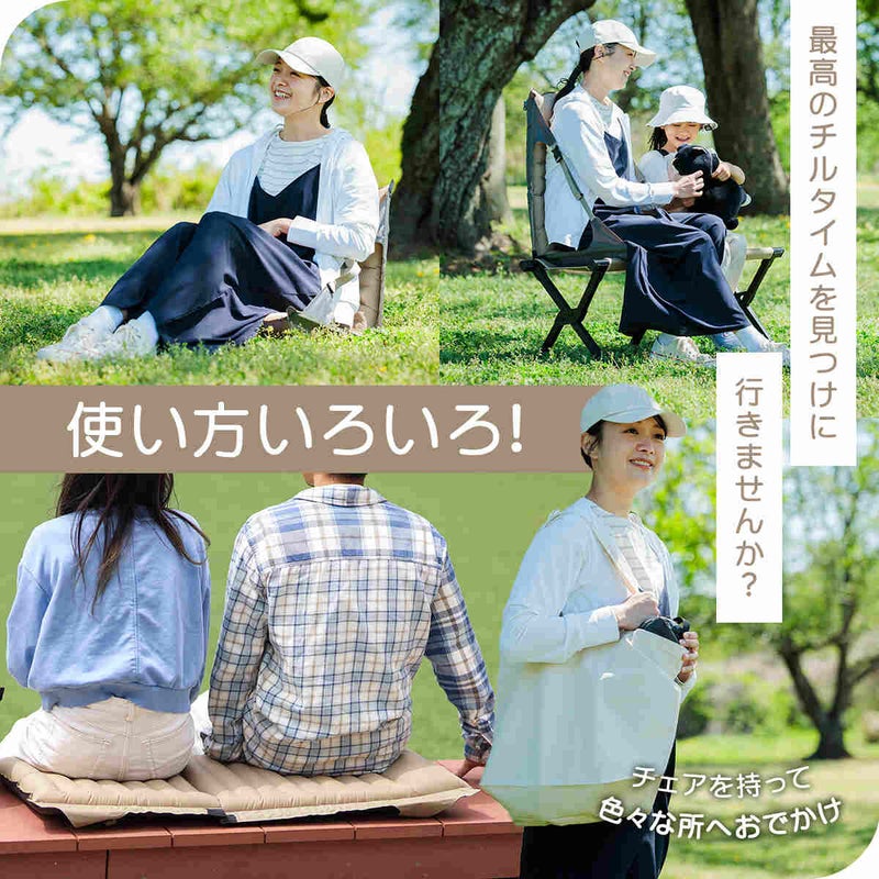 行楽にピッタリな持ち運び楽々なコンパクト座椅子