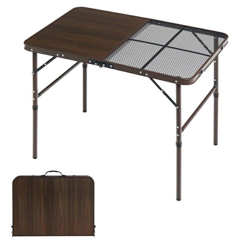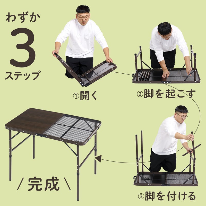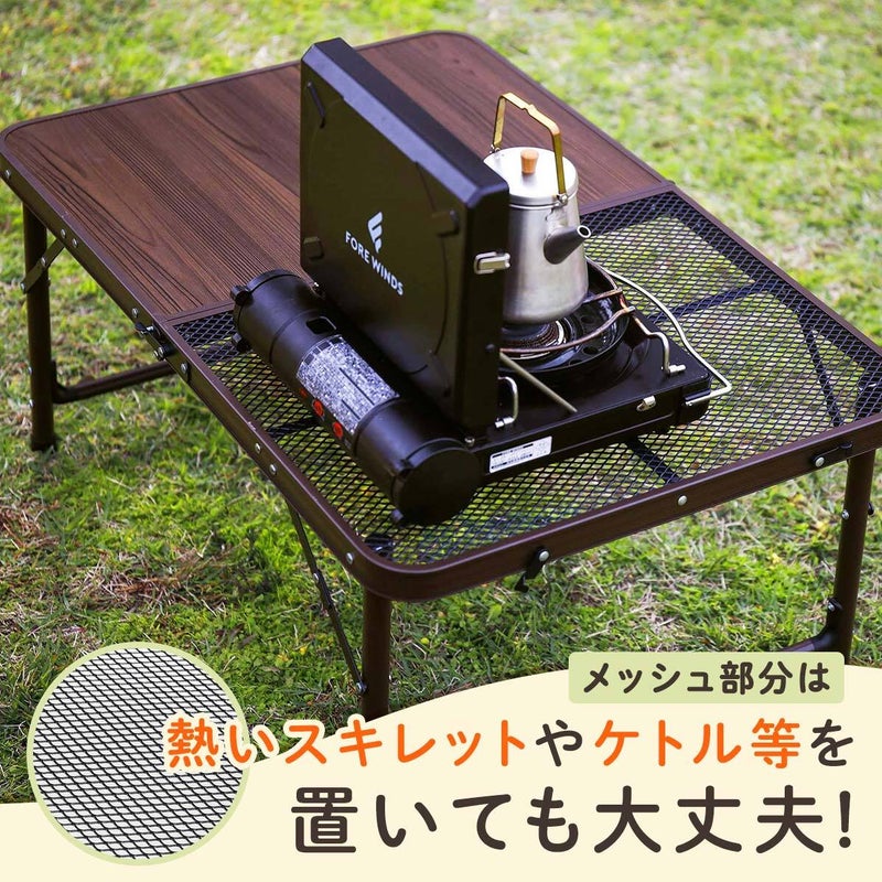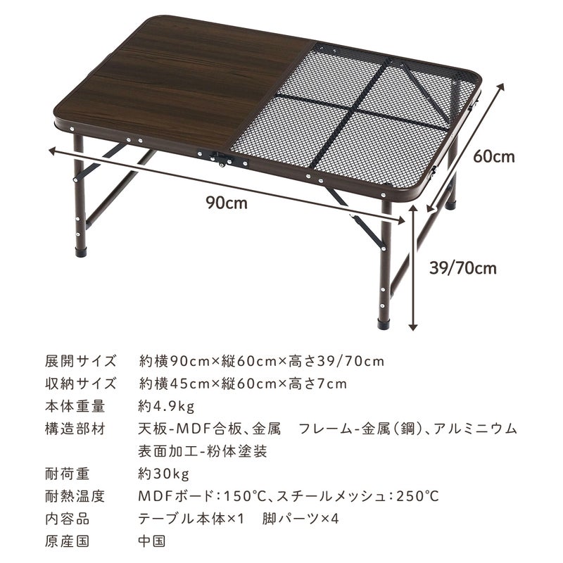 木目調天板×耐熱メッシュでBBQにも対応。