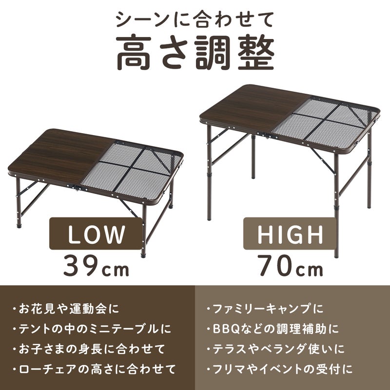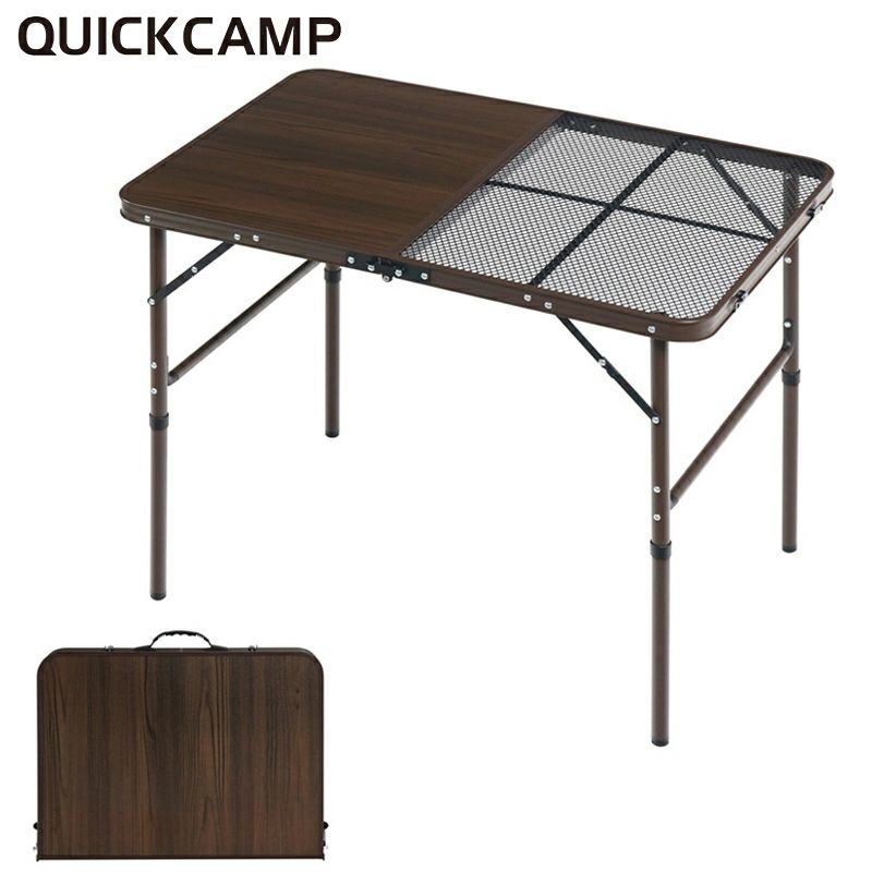 クイックキャンプ QUICKCAMP QCTABLE QC-2FT90 折りたたみテーブル 90×60cm メッシュ 耐熱 二つ折り アウトドアテーブル ハイテーブル ローテーブル バーベキュー おしゃれ 耐水 折り畳み 軽量 アルミテーブル 高さ調節 コンパクト収納 BBQ キャンプ 焚き火 焚火