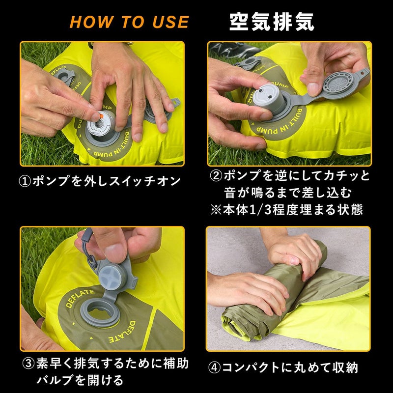 重量33gの小型エアーポンプが内蔵されており、簡単に空気を入れることができます。