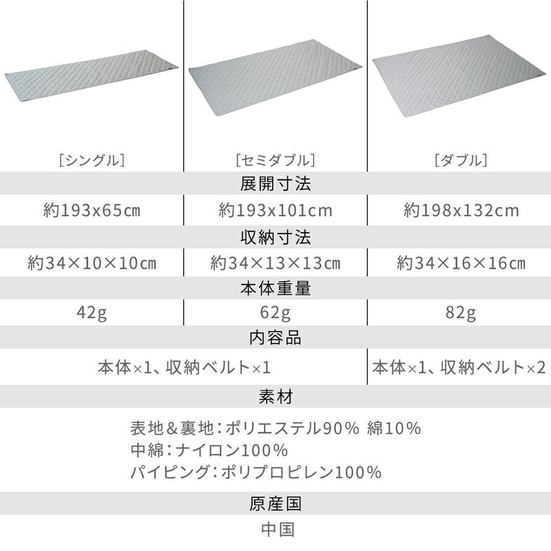 ・シングルサイズ、セミダブルサイズ、ダブルサイズの3サイズ展開。