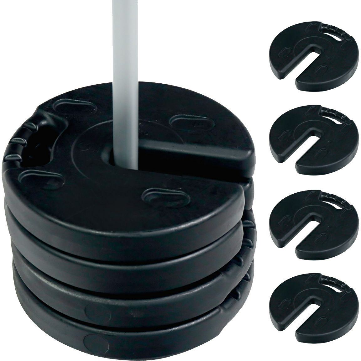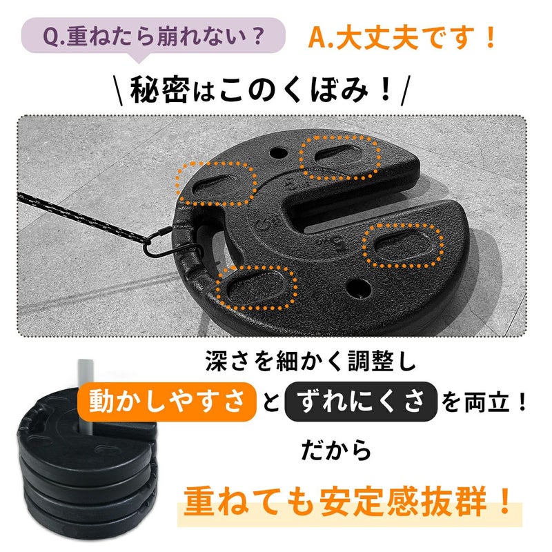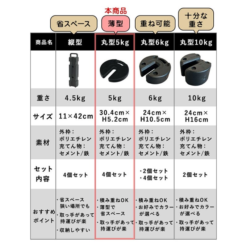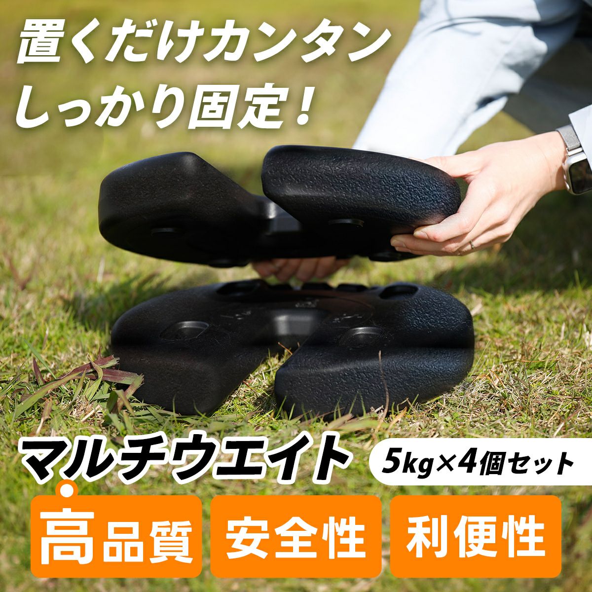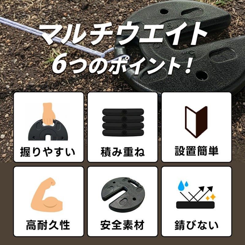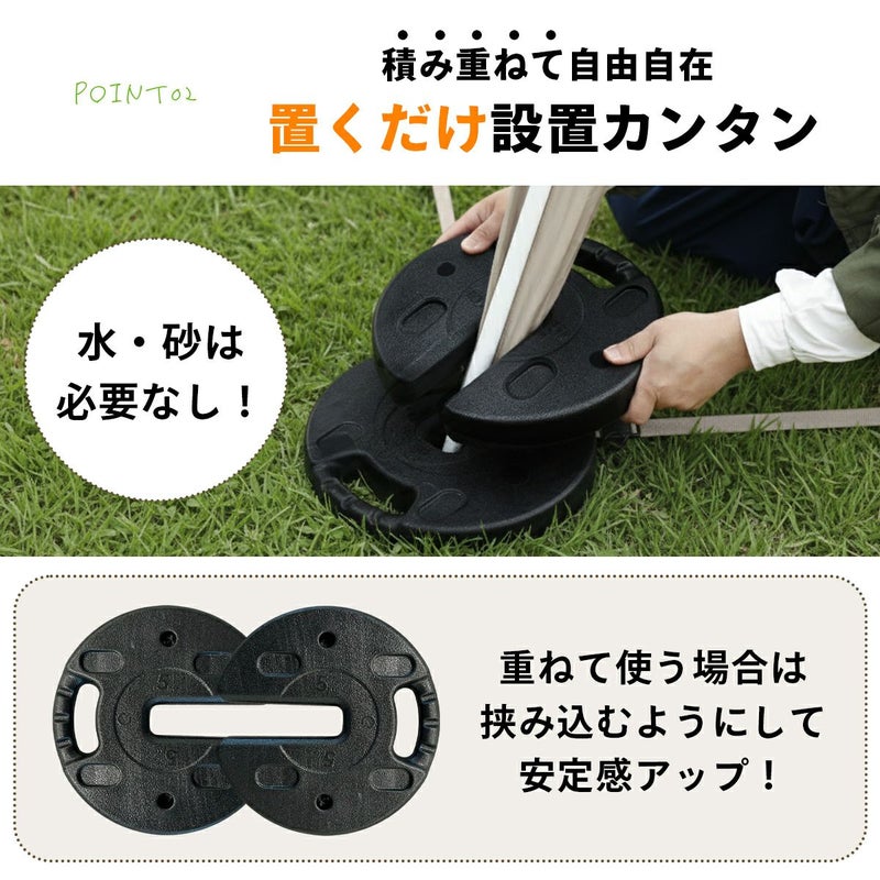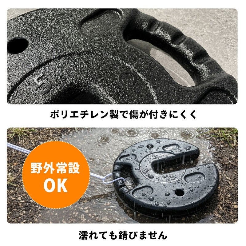ペグダウンできない場所で活躍する5kg×4枚セットのマルチウエイト。