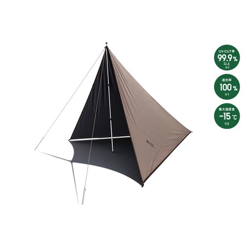 タープシートには、LOGOS独自のソーラーブロック加工を施しておりUV-CUT率99.9%以上、遮光率100%、日向と日陰で最大-15℃の温度差を実現します(※LOGOS調べ)。