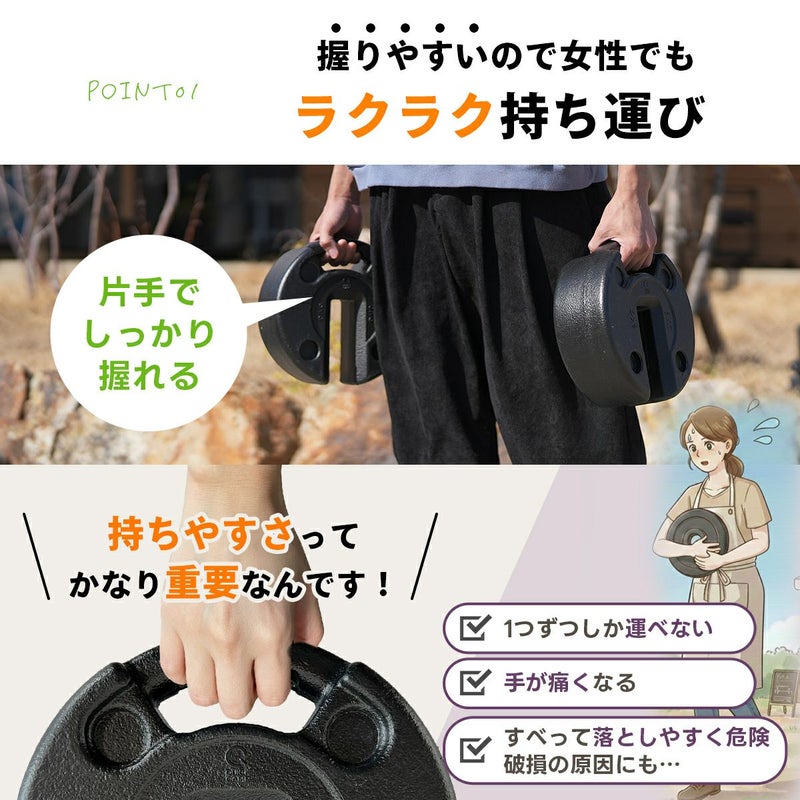強風対策に最適な10kgの大型マルチウエイト2個セット。