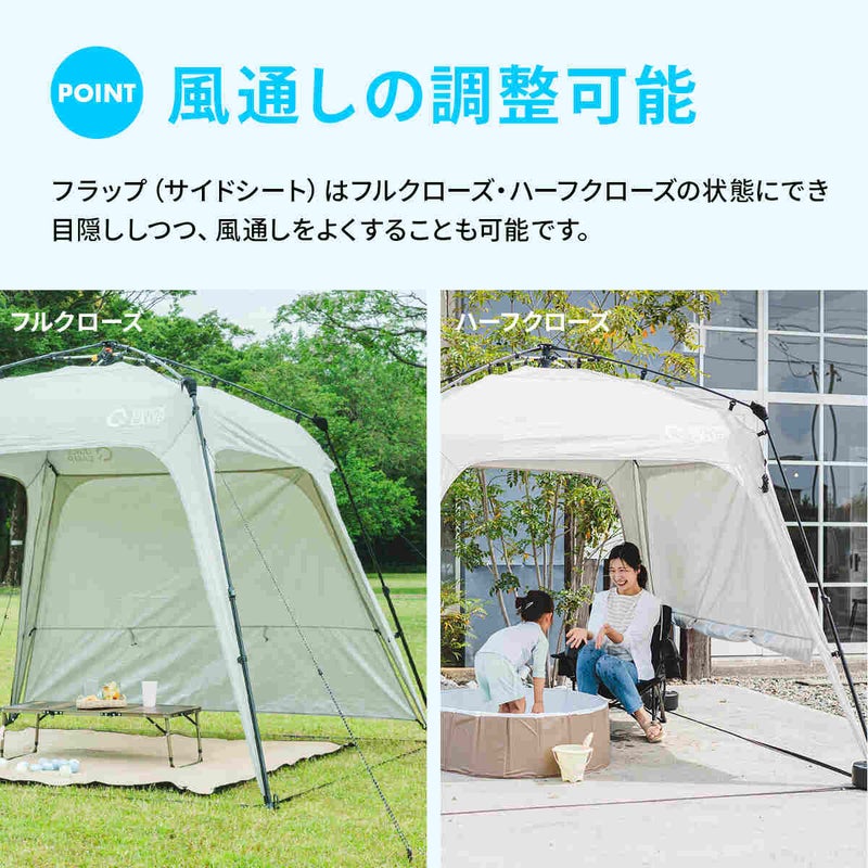 QCOUT キャンプ アウトドア ワンタッチ タープ 250 簡単 スクリーンタープ UVカット 撥水 遮光 日よけ テント ワンタッチテント サンシェード イベント バーベキュー 運動会 ファミリー ビーチ 海水浴 ピクニック