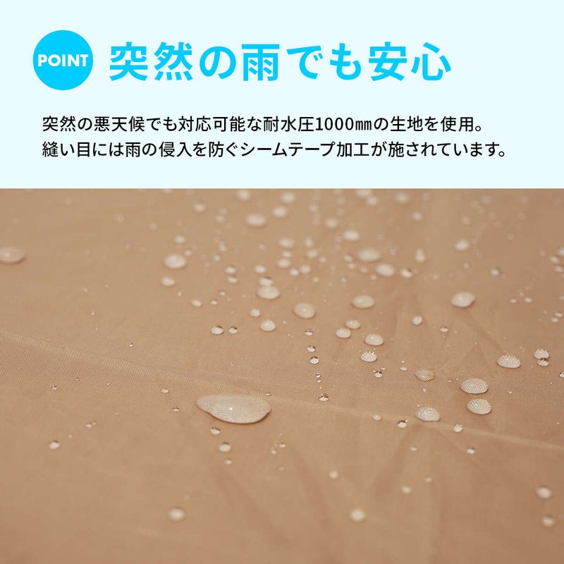 ・雨でも安心耐水圧1000mm 天井部分縫い目防水(シームテープ)加工済み。