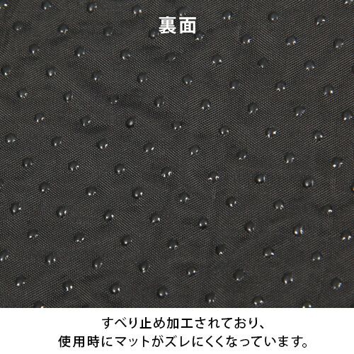 ・表地は丈夫で肌触りの良いポリエステル素材、裏地には車内やテントでのずれを防止するドット加工。