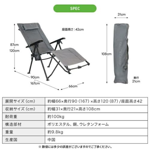チェア QCCHAIR その他ギア QCOTHER リクライニング ベランダチェア 折りたたみ椅子 椅子 ベンチ QC-RC120 一人用 コンパクト オットマン 背もたれアウトドアチェア キャンプチェア アウトドア キャンプ サウナ 川 海 花見