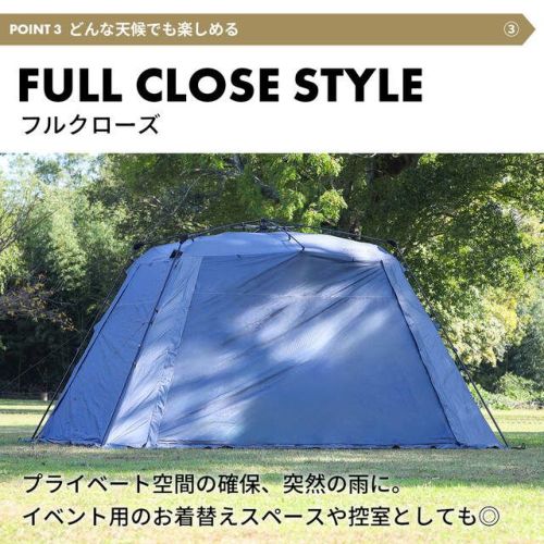 イベントからキャンプまで幅広く活躍するフルクローズタイプのスクリーンタープ。