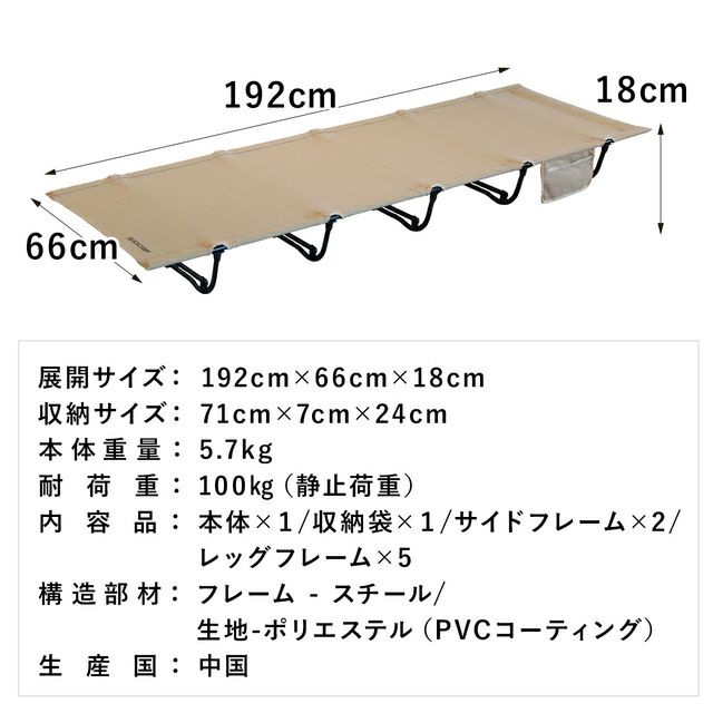 クイックキャンプ(QUICKCAMP) ローコット 折りたたみ キャンピングベッド サンドベージュ QC-LC190 SDB