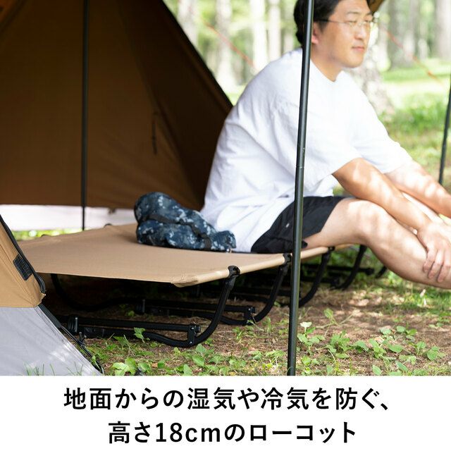 ソロキャンプ、タープ泊に最適なローコット。
