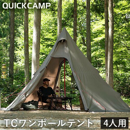 QUICKCAMPポリコットン製ワンポールテント オールインワンセット。