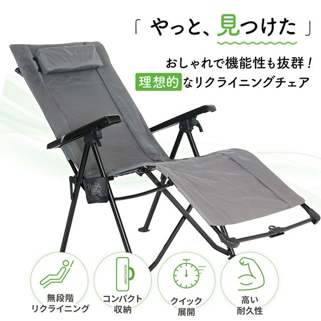 クイックキャンプ(QUICKCAMP) リクライニングチェア グレー QC-RC120