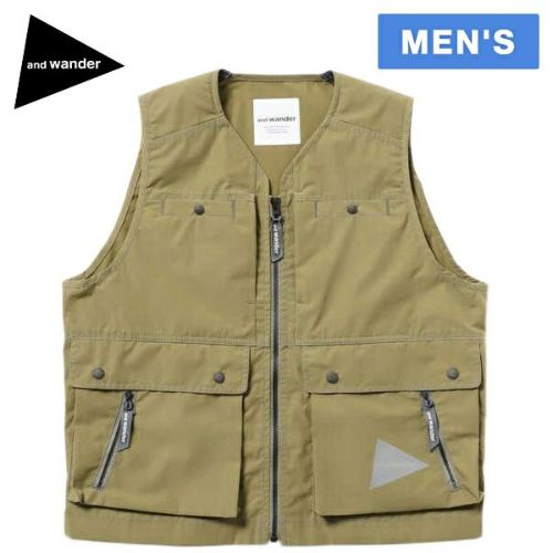 アンドワンダー(and wander) タフナイロンベスト tough nylon vest メンズ ベージュ 5743181017