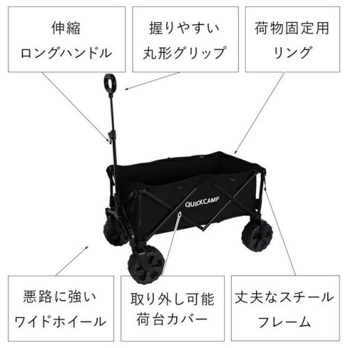 QCWAGON キャンプ アウトドアワゴン キャリーカート アウトドアキャリー 収束式 折りたたみ 耐荷重100kg 大容量 自立 頑丈 台車 レジャー バーベキュー スポーツ ピクニック ビーチ マルチキャリー ワゴン キャスター付き