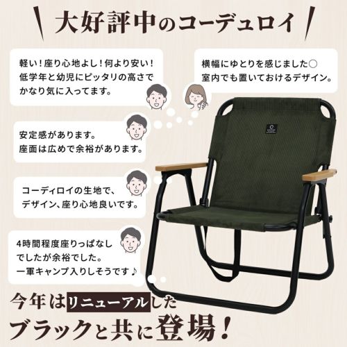 6. 折りたたみ 一人掛け ローチェア コーデュロイ カーキ QC-ASC60C KH