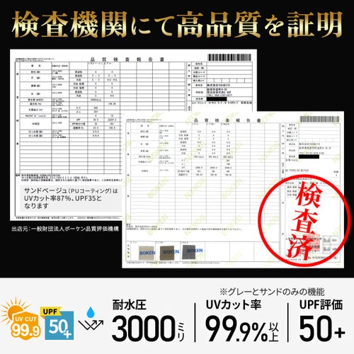 ・UVカット率99.9%以上、UPF50+。