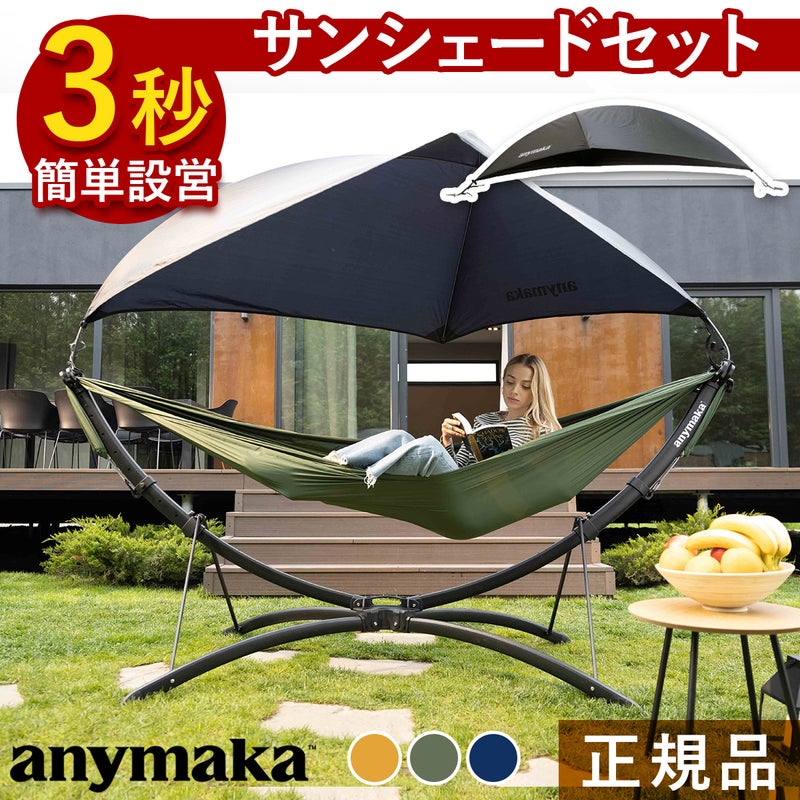 わずか3秒で設営完了!エニーマカのポータブルハンモックと専用サンシェードのお得な2点セット。