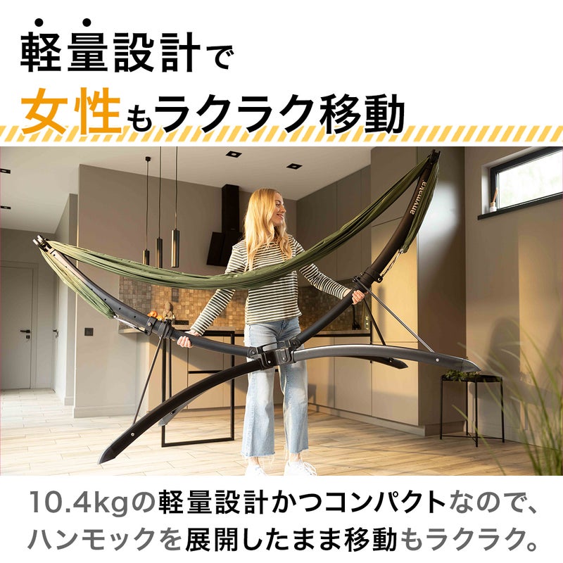 ・手持ちのハンモックでも300~360cm以内の標準的なハンモックであれば、仕様が合えば代用可能。