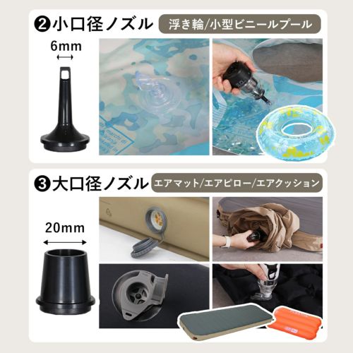 浮き輪やマットはもちろん、家庭用の大型プールやエアベッドの空気入れ・空気抜きをスピーディに行うことができます。