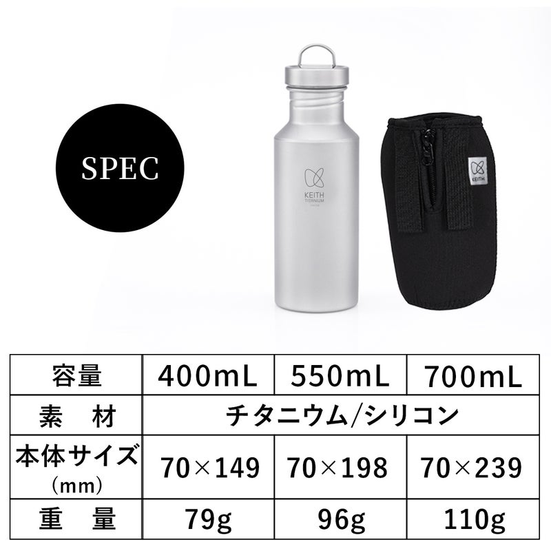 容量は550ml、サイズはφ70×198mm、重量は約96gです。