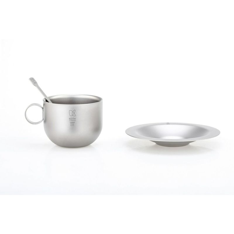・コーヒーカップ(ダブルウォール)、受け皿、スプーンのコーヒー3点セット。