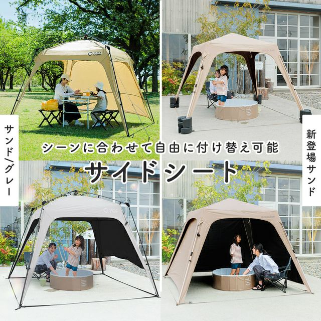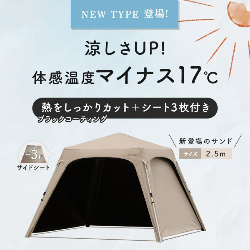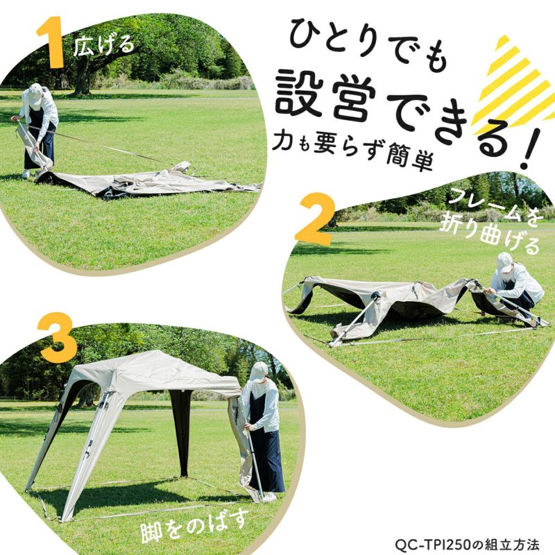 QCOUT タープテント 2.5m ワンタッチ 簡単組み立て ブラックコーティング サイドシート サンシェード スクリーンタープ 簡単 軽量 日よけ 日除け UVカット 熱中症対策 防水 おしゃれ アウトドア キャンプ バーベキュー イベント 運動会