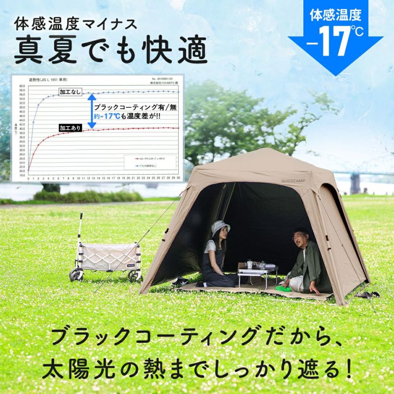 ・ブラックコーティングでタープ下体感温度-17℃。