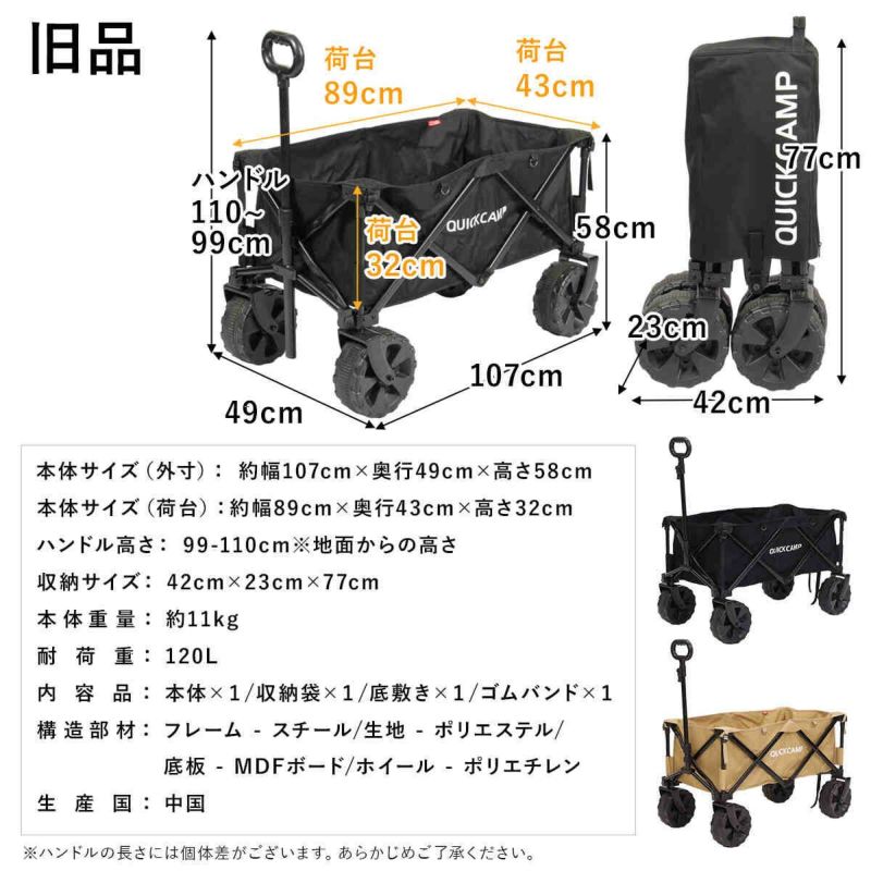 QCWAGON 送料無料 行楽 キャンプ アウトドアワゴン キャリーカート アウトドアキャリー 収束式 折りたたみ 静止耐荷重100kg 走行耐荷重70kg 大容量 自立 頑丈 台車 レジャー バーベキュー スポーツ ピクニック ビーチ マルチキャリー ワゴン キャスター付き
