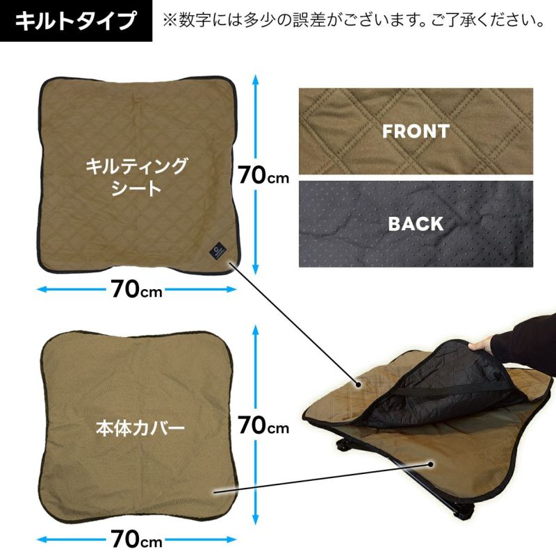 フレーム、本体カバー、キルティングマット、持ち運びに便利な収納袋がセットになっています。