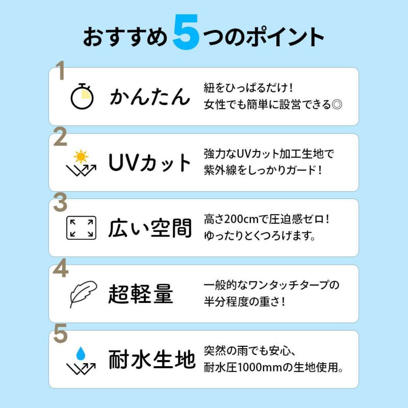QCOUT キャンプ アウトドア ワンタッチ タープ 250 簡単 スクリーンタープ UVカット 撥水 遮光 日よけ テント ワンタッチテント サンシェード イベント バーベキュー 運動会 ファミリー ビーチ 海水浴 ピクニック