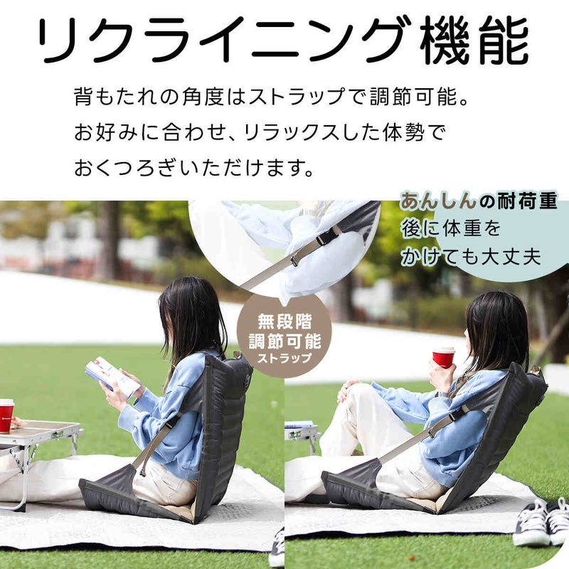 ・地べたでも快適に座れるエア座椅子。