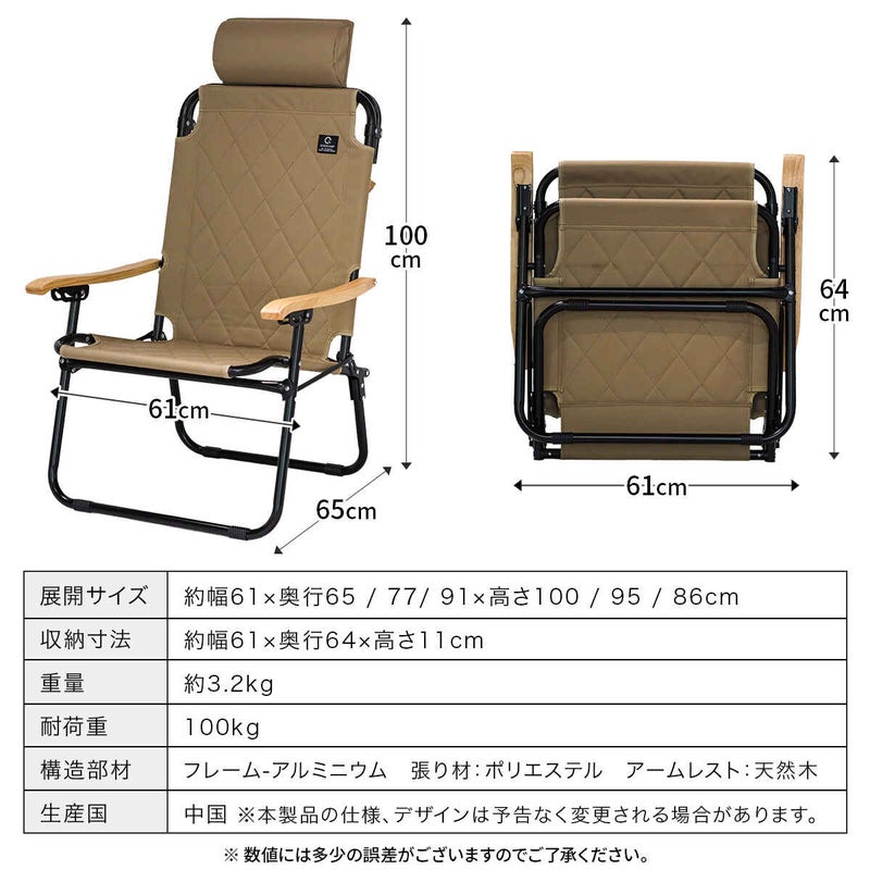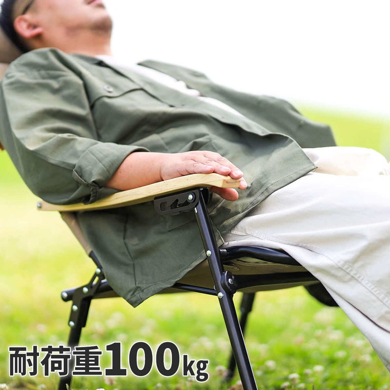3段階リクライニング機能付きのアウトドアローチェア。