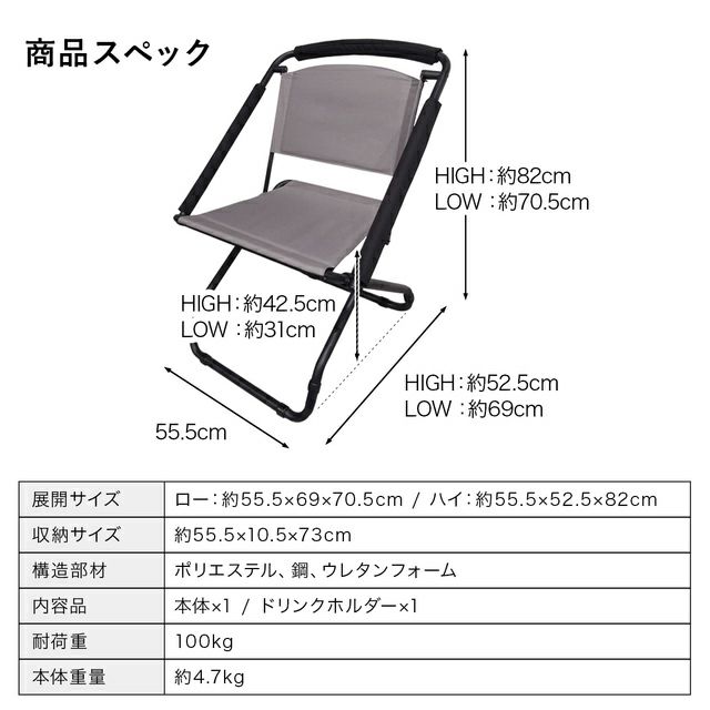 他の画像を見る 即納 クイックキャンプ(QUICKCAMP) 2WAY チェア ブラック/グレー QC-2WC55 販売価格 ¥ 5,280 税込 %OFF 話題沸騰中!リール100万回再生突破!!シーンに合わせて高さが変えられる、2WAYチェア。 詳細を見る お気に入り登録