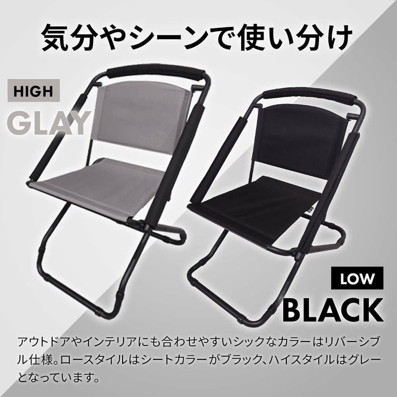 ハイ・ロー2段階の高さ調整が可能な2WAYアウトドアチェア。