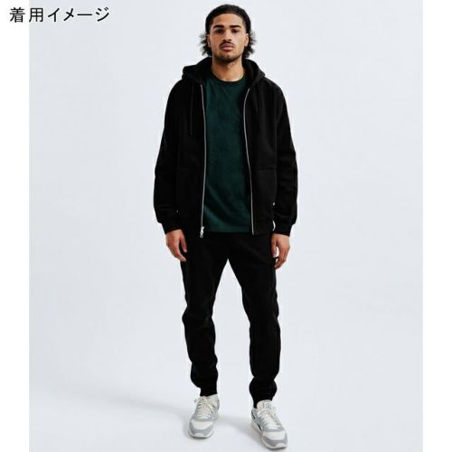 裏起毛フリース、ジャージ裏地付きポケット、プレミアムリブウエストバンド、ストレッチリブ袖口、動きやすさを高める二重層の股マチを備えたデザイン。