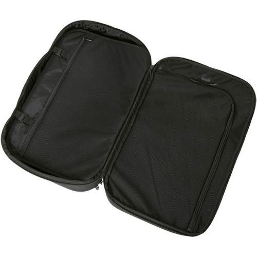 左右に大きく開くメインコンパートメントは、15インチまでのノート型PC収納用のスリーブと書類用のオーガナイザーを設け、衣服の収納も可能。
