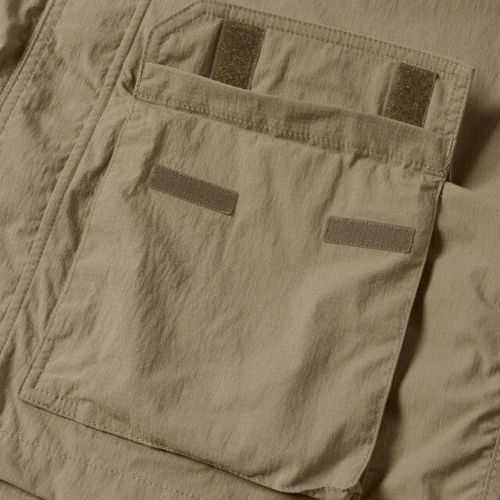 経糸にスパンナイロン糸、緯糸にフィラメントを使用したリップストップ生地は、光沢を抑えたマットな生地感が特徴で、天然素材のようなナチュラルな風合い。