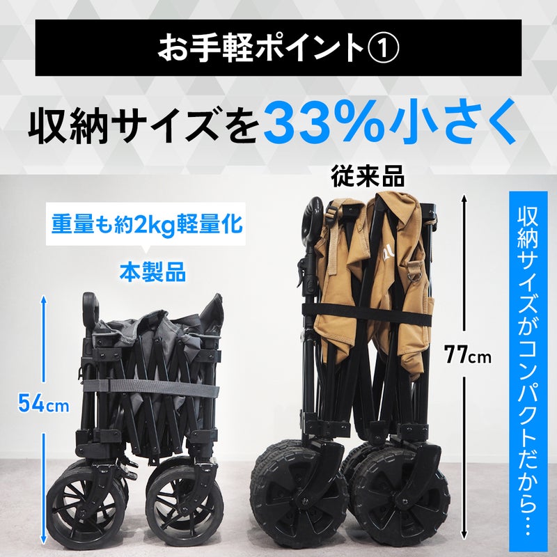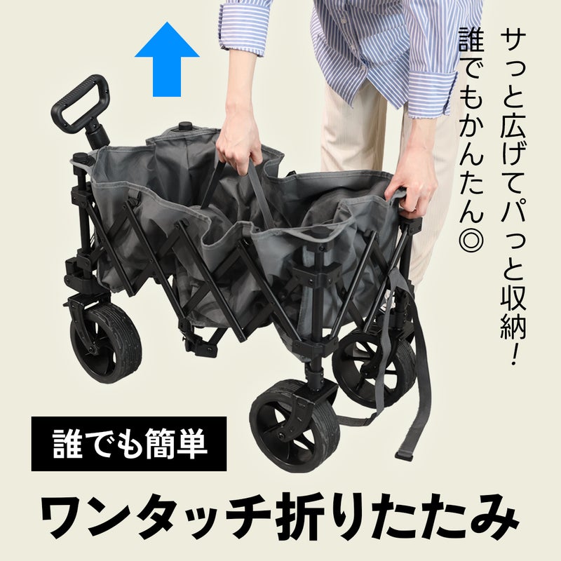 約110Lの大容量でキャンプ道具をまとめて運べるアウトドアワゴン。