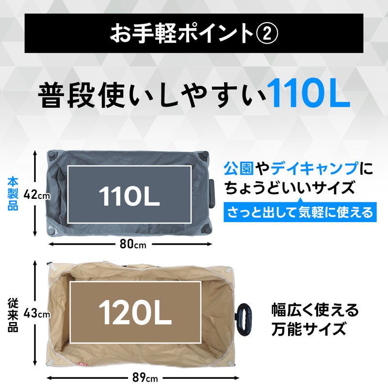 ・約110Lの大容量サイズ。