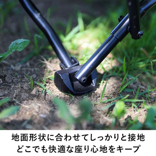 あぐらも組める幅広座面を採用しており、背面にはスマホ等を収納できるメッシュポケットと、小物を掛けられるDリングが付いています。