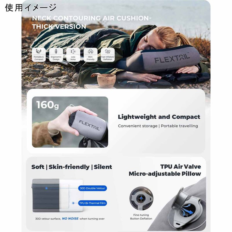 FLPM 枕 エアピロー アウトドア コンパクト 収納袋付 キャンプ テント泊 登山 釣り 旅行 睡眠 飛行機 焚き火 ピクニック BBQ ビーチ 海水浴 プール 防災