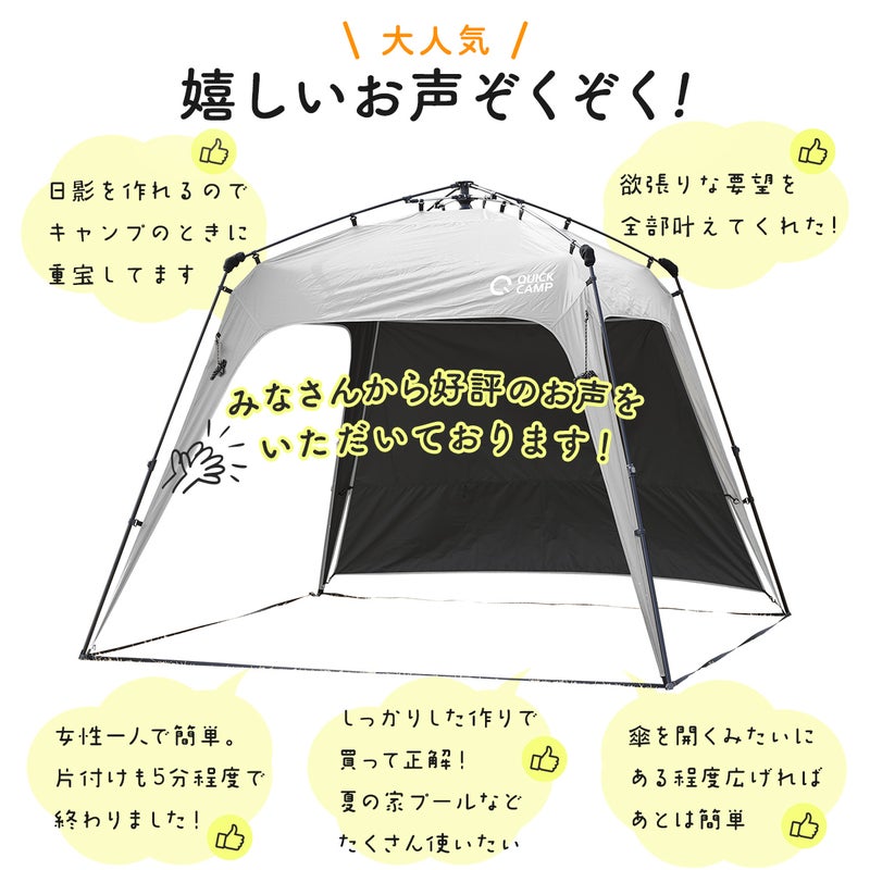 QCOUT タープテント 2.5m ワンタッチ 簡単組み立て ブラックコーティング サイドシート サンシェード スクリーンタープ 簡単 軽量 日よけ 日除け UVカット 熱中症対策 防水 おしゃれ アウトドア キャンプ バーベキュー イベント 運動会