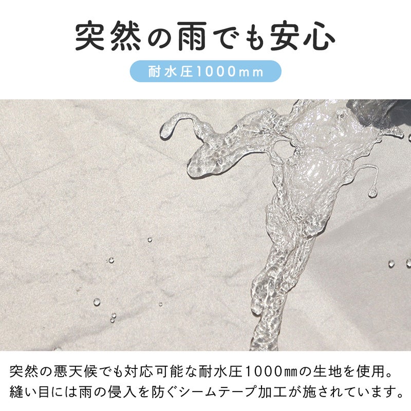 ・雨でも安心耐水圧1000mm 天井部分縫い目防水(シームテープ)加工済み。