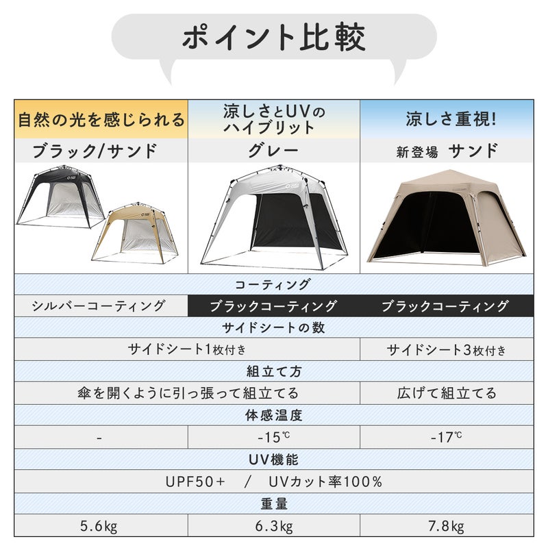 ・ブラックコーティングでタープ下体感温度-17℃。