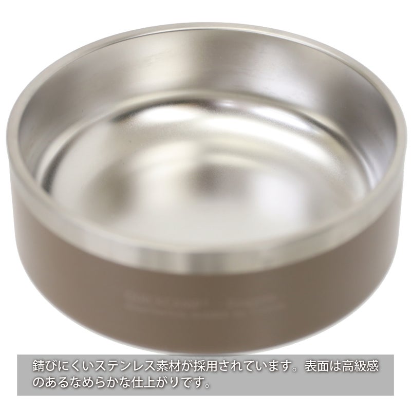 ・ステンレス二層構造でプラスチックやアルミ製のフードボウルに比べ、飲み水を冷たく&温かく保てる。