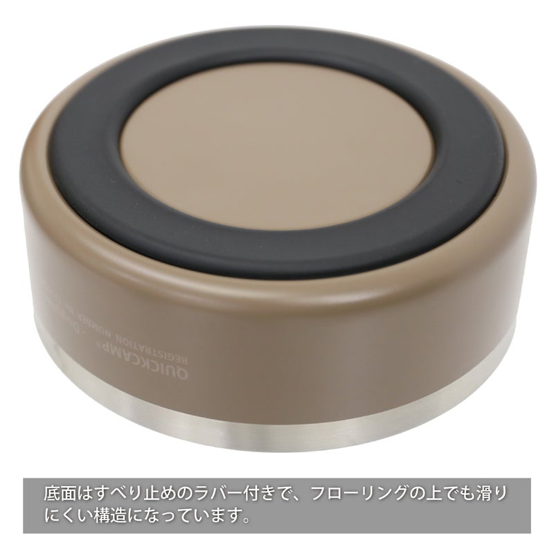 断熱性のあるステンレス二層構造により飲み物の温度を保ちやすい点や、滑り止めのラバーが付いているためフローリングでも滑りにくい点が特徴です。